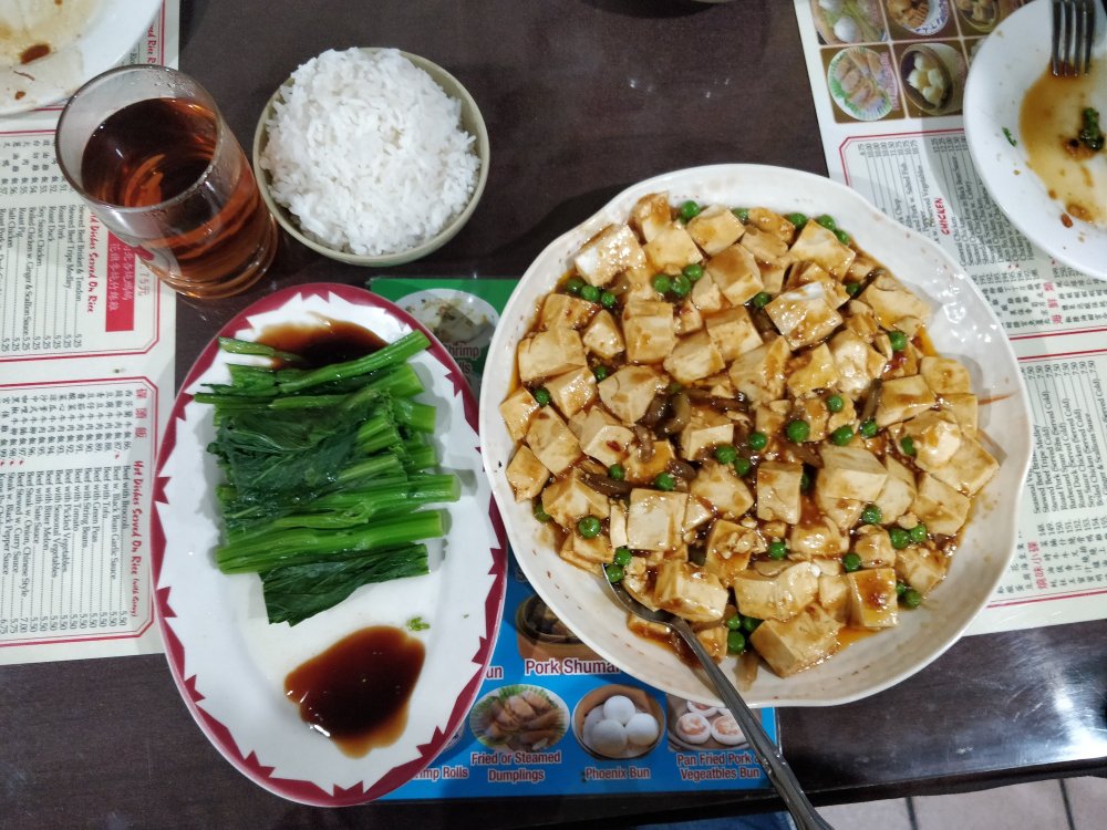 Lastly , we ordered mapo tofu along with a small portion of rice on the side (we asked for it extra) … It was a huge dish and we did not anticipate it to be this huge for $8.5. It was really warm and yummy, topped with peas and we ate like we haven’t eaten anything the entire day. Still we barely finished 1/3 of the plate and got the rest packed.