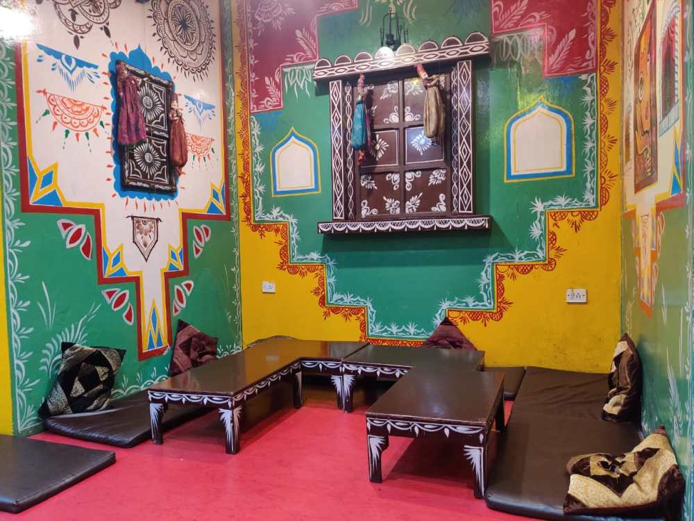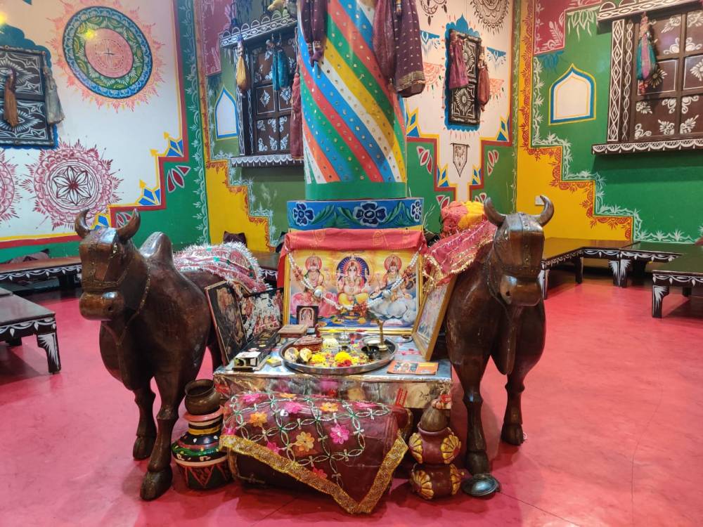 This thaali is meant for people who are fasting – and they have thoughtfully added cut banana and raisins to start with along with lassi. Although they have 3 dishes comprising of saboo dana – but each is different from the other. The cashew paneer – needs no explanation – you know from the taste and texture what are the ingredients. The arbi fry and all other darsan were fresh n crisp. The pooris (2 types – Rajgiri puri & Kutt ki poori) were perfect size , non greasy and so apt with the aloo tamatar , aloo jeera and khatta meetha kaddu. In fact the ‘aao bhagat’ is absolutely commensurate with the ‘atithi devo bhava’ attitude which Rajasthan embodies. I am truly floored. I chanced to meet the hands (otherwise you may call the Maharaj) who cooked this lovely meal – Joshi Ji , who has extensive travel experience over 25 countries for catering .