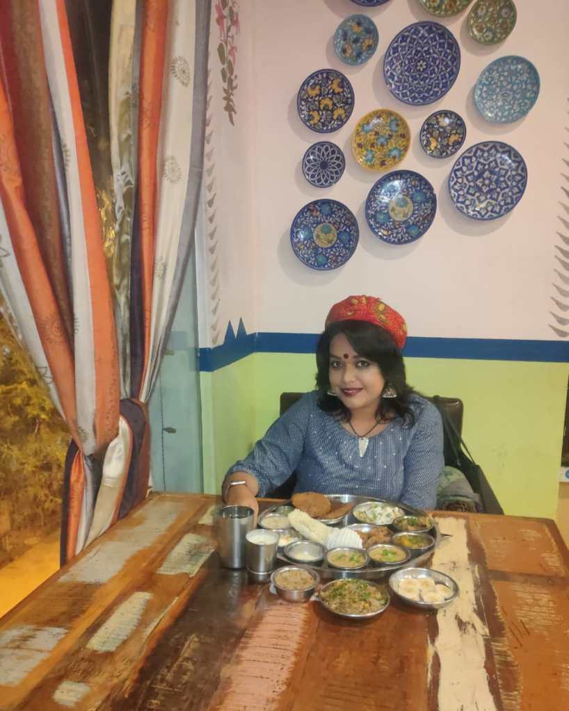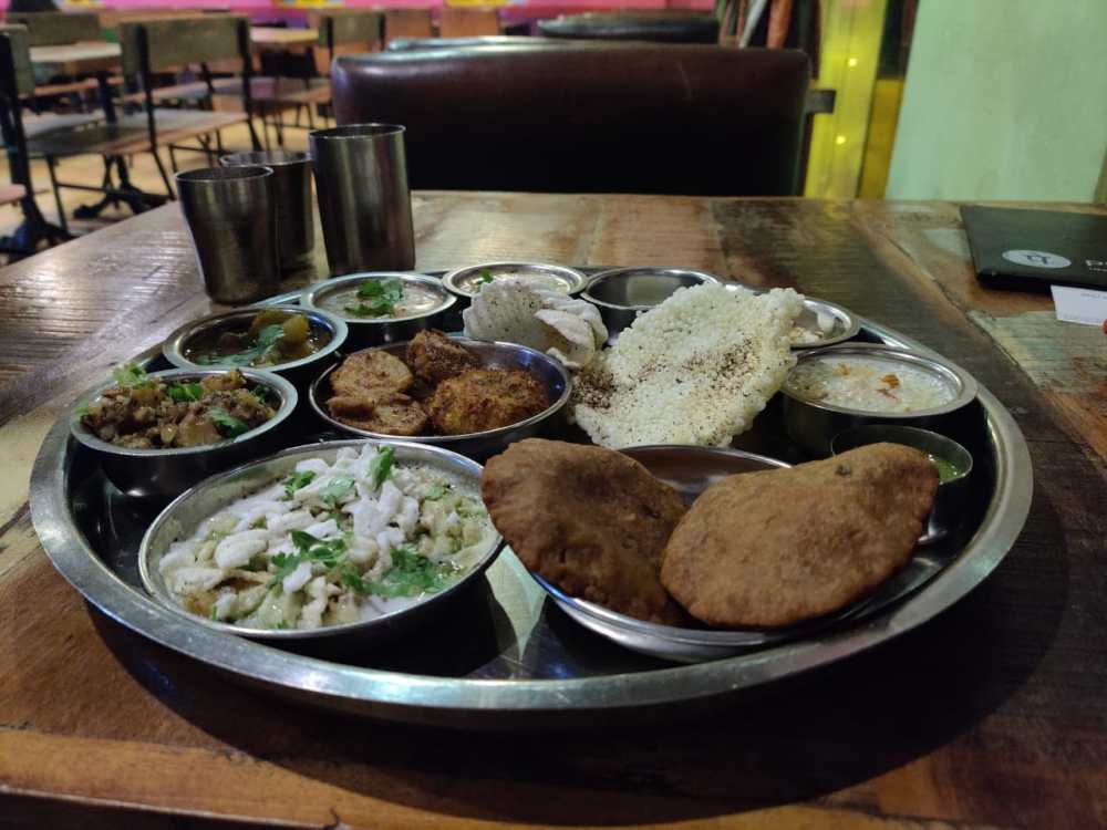 Here we begin – With the Durgapuja this week, my mind is wandering in the streets of Kolkata – Metro cinema , New Market, Gariahat and so many places. I have seen Ma bargain a lot while buying things from the street hawkers. In case she felt she did not get a right deal – she would check the next salesperson with similar ware and this time if she found it just – she would not pick up one , but probably a few more, to make up for the loss incurred earlier. While the same doesn’t apply to food – I must admit the search for the next ‘right’ place – the state of mind remained the same for me , since last Saturday. The hunt for the perfect ‘navratri thaali’ kept me occupied. I am unabashed and now glad that my wait was just 48 hours long and now I as I write – I have had that perfect thaali , I was imagining.